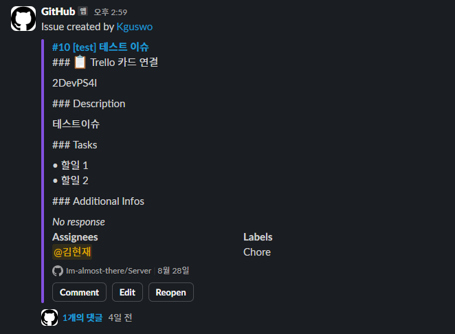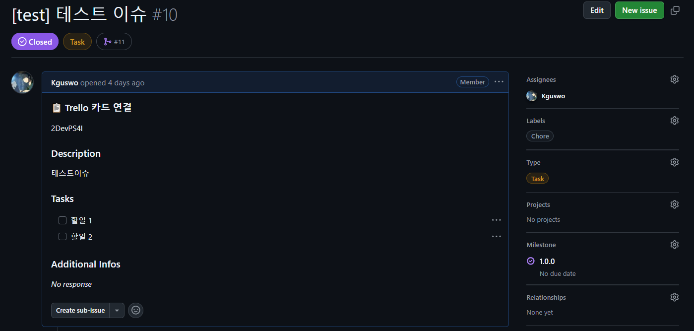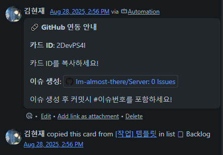 - 카드에 생성된 GitHub Issue 링크로 접속