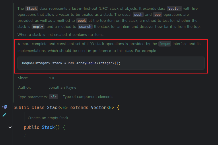 실제 자바 표준 라이브러리애서는 java.util.Stack