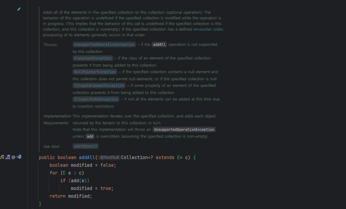 AbstractCollection ← 여기에 addAll이 구현되어 있다!