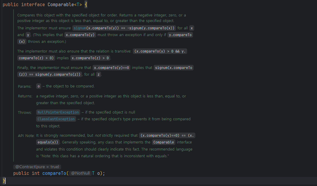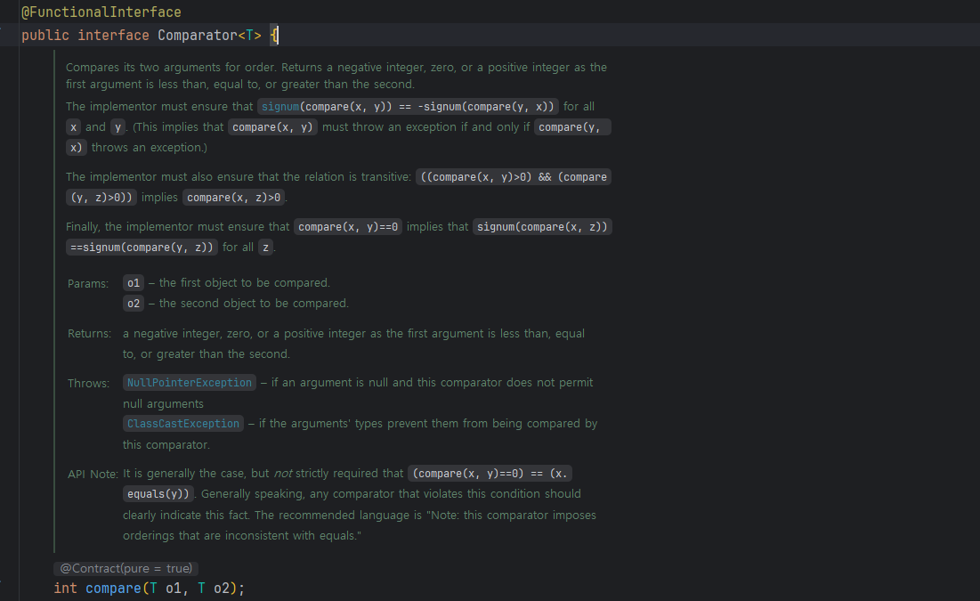 인터페이스를 구현할 때 지켜야 할 규약과 주의사항, 그리고 Comparator