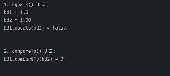 는 scale(소수점 자릿수)까지 비교해서 false를 반환했고,compareTo